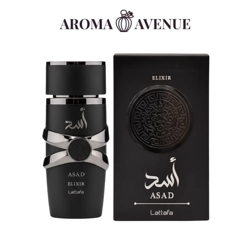 Asad Elixir de la Lattafa Perfumes este un parfum masculin puternic, intens și elegant, dedicat bărbatului modern care emană încredere, carismă și rafinament. O compoziție oriental-lemnoasă de excepție, care combină forța condimentelor cu căldura vaniliei și misterul notelor de ambră.