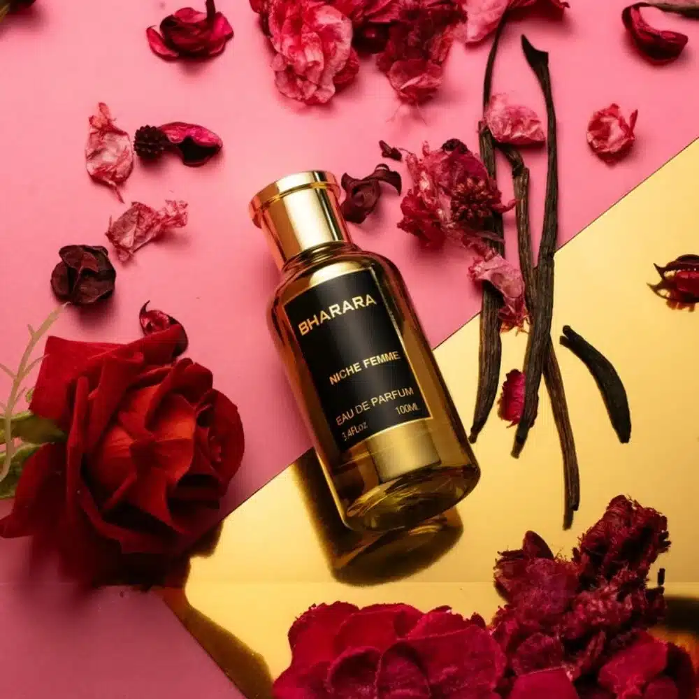 Bharara Niche Femme este inspirat de Delina de la Parfums de Marly, având o combinație rafinată de note fructate, trandafir turcesc și vanilie, ce oferă o aromă feminină și sofisticată.