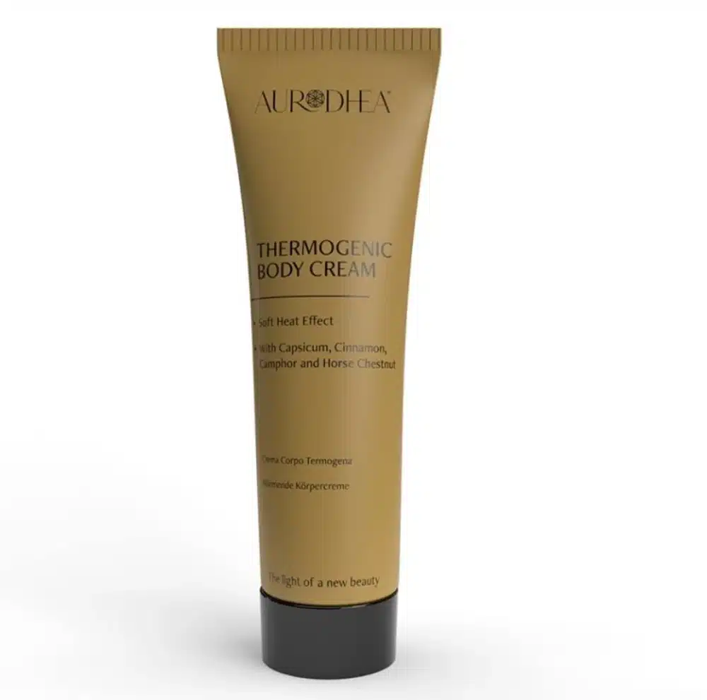 Cremă corp termogenică efect ‘cald soft’ Aurodhea a fost concepută ca un tratament specific pentru celulită. Capacitatea de a stimula circulația și de a produce căldură pentru a imbunătăți microcirculația. Această îmbunătățire, combinată cu acțiunea uleiurilor esențiale de scorțișoară, camfor și castan de cal, acționează asupra proceselor care reglează circulația fluidelor. În plus față de funcția anti-celulitică, crema de corp termogenică Soft Heat lasă pielea suplă, fermă și netedă.