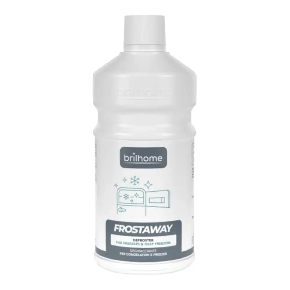 Frostaway – soluție de dezghețare pentru congelatoare special concepută pentru congelatoarele adânci și compartimentele de congelator. Acțiunea sa specifică accelerează semnificativ procesul de dezghețare, deoarece, pătrunzând în microfisurile de gheață, elimină rapid excesele acesteia ajungând la pereții frigiderului. Ajută la restabilirea funcționării corecte a aparatului electrocasnic, contribuind astfel la prelungirea duratei sale de viață și economisirea energiei. Ușor și sigur de aplicat, eficient pe gheață dar blând cu suprafețele, lasă un miros plăcut după utilizare. Caracteristicile sale îl fac potrivit și pentru utilizarea în activități supuse sistemului de autocontrol H.A.C.C.P. FROSTAWAY ESTE ÎNLOCUITORUL LUI DEFROST CU PUTERE MAI MARE DE CURĂȚARE ȘI MAI CONCENTRAT.