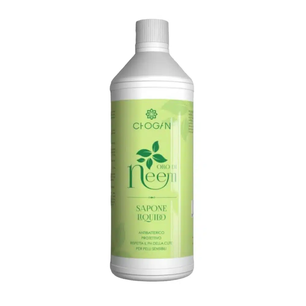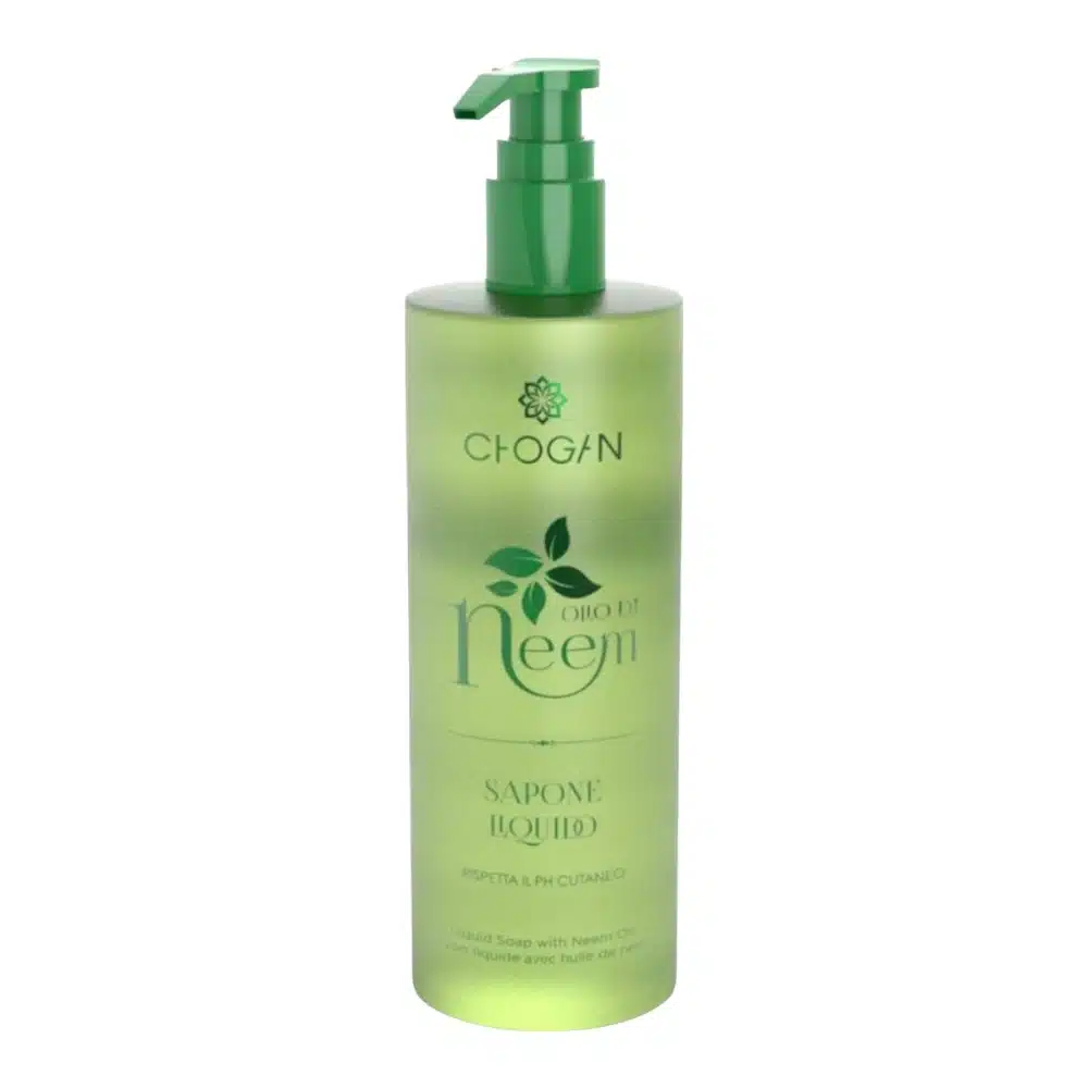 Săpun lichid cu ulei de neem este un detergent blând, indicat pentru curățarea pielii mâinilor în cazul mâinilor uscate și crăpate. Prezența uleiului de neem îl face un agent antibacterian și antifungic eficient. Are proprietăți hidratante și protectoare, care contracarează efectele nocive ale agenților externi. Aloe vera în formula sa calmează pielea iritată și contracarează roșeața. Utilizarea regulată protejează pielea afectată de psoriazis și dermatită, lăsând-o moale și catifelată.