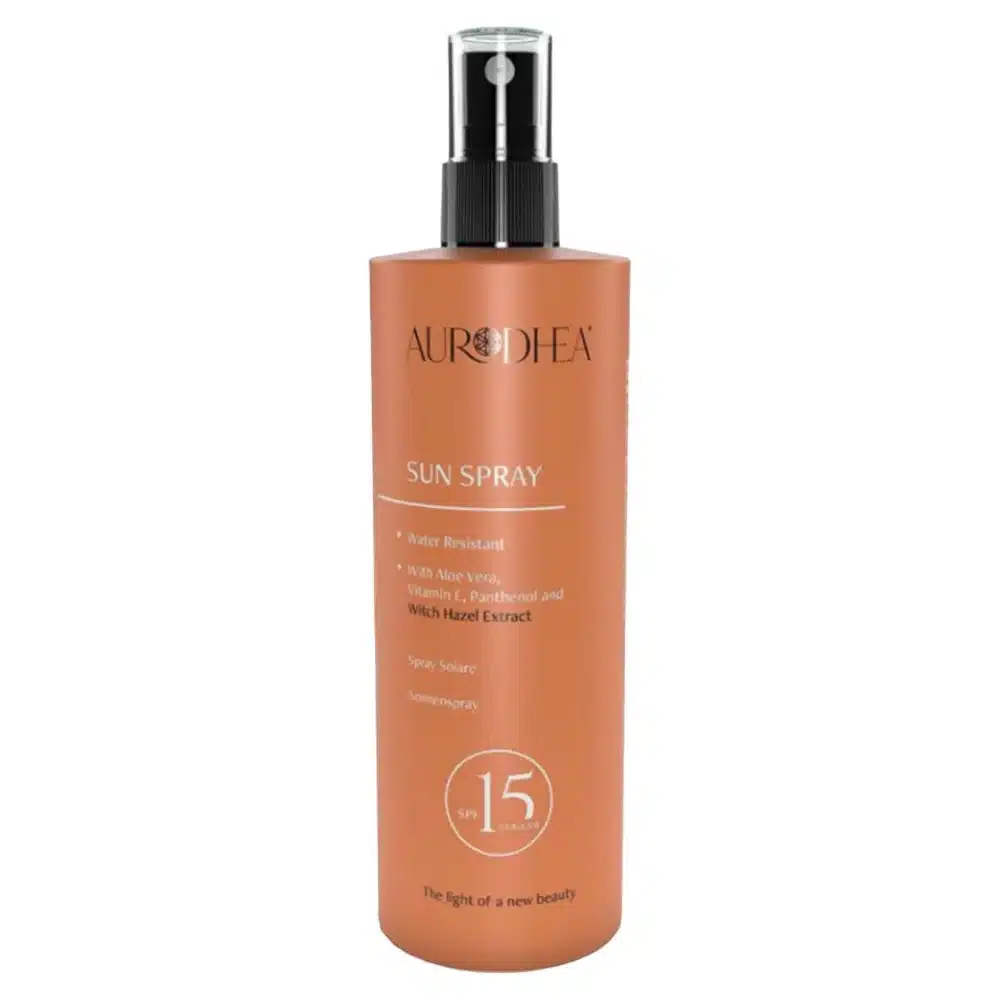 Aurodhea Sun Spray SPF 15 oferă o protecție eficientă împotriva razelor UVA și UVB, ajutând la prevenirea arsurilor solare și a îmbătrânirii premature a pielii. Formula sa este îmbogățită cu extract de Hamamelis, ideal în calmarea iritațiilor cauzate de soare, și cu vitamina E, un antioxidant puternic care protejează pielea împotriva radicalilor liberi, reducând riscul apariției ridurilor, petelor și decolorărilor.